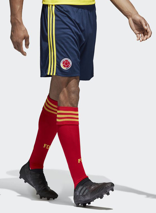 6日に発表されたパンツとソックスは、ブルーとレッドをそれぞれ基調としている。ソックスの前面にはコロンビアサッカー連盟の略称“FCF”、背面にはadidasロゴが入る。