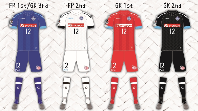 全キットの全身。GKユニフォームは、ホームが赤、アウェイが黒、そしてサードはFPホームをそのまま使用する。
