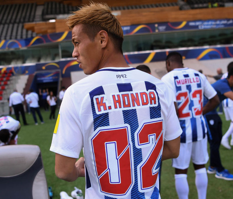 背番号はフォントがまったく異なる。また名前に関してはクラブがFIFAへ事前に申請した通り、本田圭佑のシャツネームは通常の「KSK」ではなく、「K.HONDA」となっている。