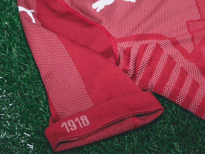 リリースに合わせて公開された画像は、選手用のオーセンティック・ユニフォームと思われる。右袖の裏側には数字“1918”がプリントされている。
