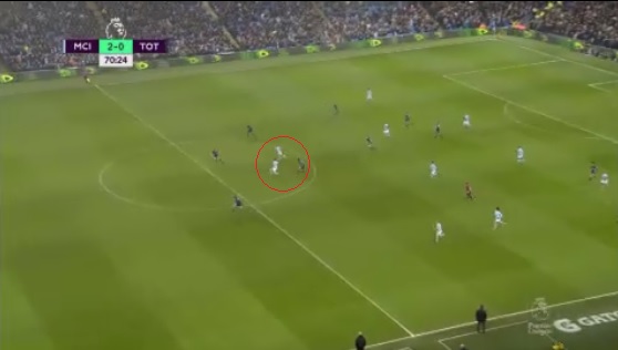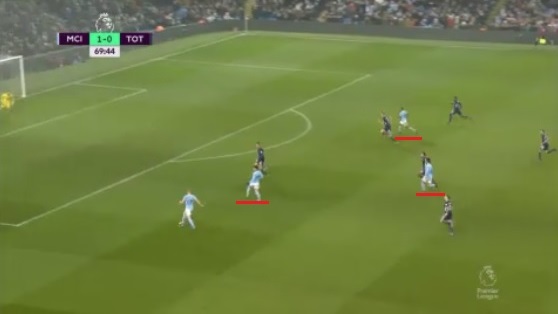 このゴールはドリブルで持ち込んだデ・ブライネの強烈なシュートで「仕上がる」わけだが、個人的に目を引いたのはその前のシーンにあった。