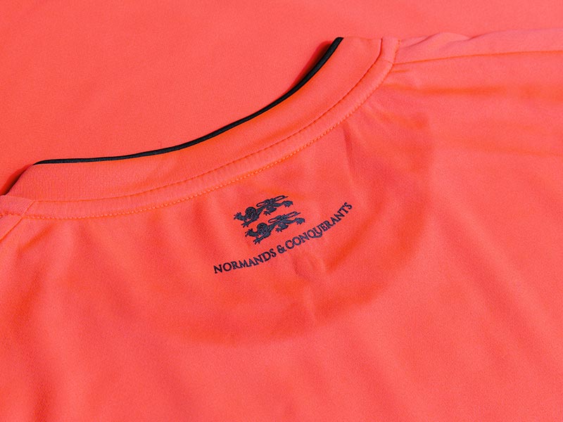ライオンの透かしプリントが特徴的なアウェイユニフォーム。色は「薄いピンク」や「薄いオレンジ」に見えなくもないが、メーカー公式には「コーラル(珊瑚色)」とのこと。胸スポンサーはフランスの住宅メーカー。