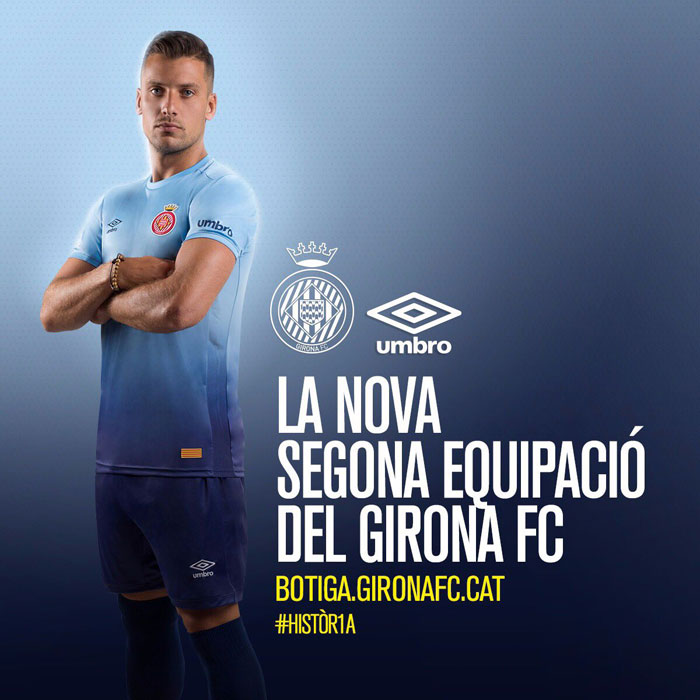 アウェイユニフォームは、地中海に面した土地柄のジローナらしくブルーを基調。海深く沈むような、上から下にかけて濃さが増すグラデーションが美しいデザインだ。