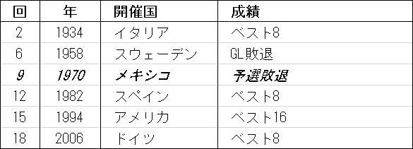 <表6> 過去の「戌年」W杯でのアジア地域(AFC)代表の成績