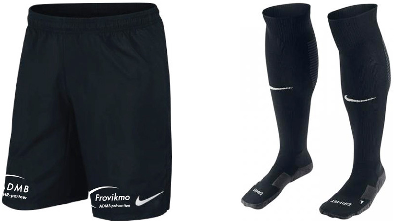 パンツとソックスもブラックを基調。パンツは左右で異なるスポンサーロゴを配しているが、どちらも同じ企業のロゴマーク。ソックスは前面にスウッシュ(Nikeロゴ)のグラフィック入りで、背面には選手の番号が小さくプリントされている。