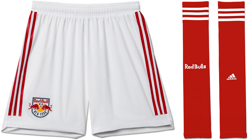 パンツはホワイトをメインに、スリーストライプスにはレッドを配した。ソックスはシャツと同じレッドで、前面には“Red Bulls”、背面にはメーカーロゴマークのグラフィック入りとなっている。