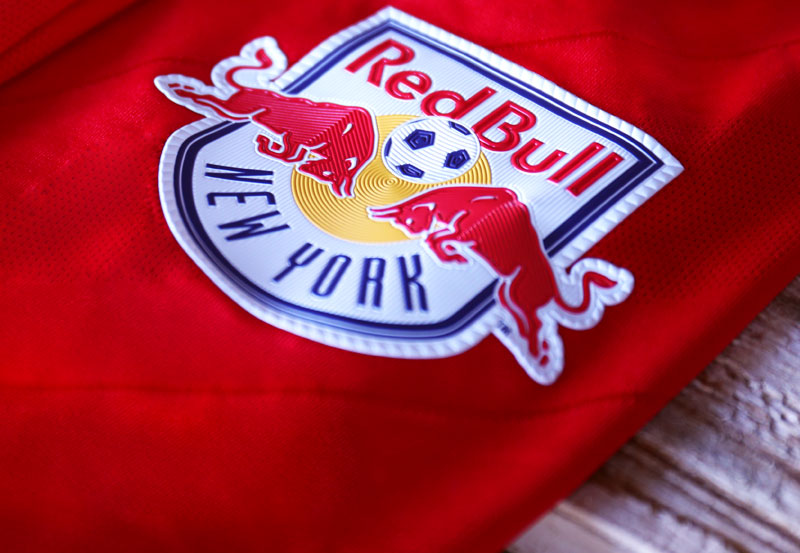 両袖のMLSロゴマークはチームごとに色が異なり、レッドブルズはレッドをプリントしている。