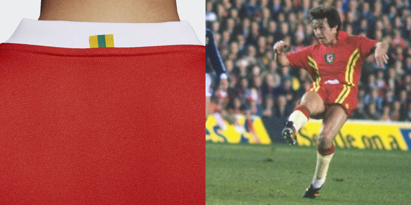 ウェールズ代表の新しいホームユニフォームは、過去のユニフォームにインスパイアされたデザイン。既に昨年11月のフレンドリーマッチ(パナマ代表戦、フランス代表戦)で着用され、レプリカユニフォームも販売開始となっている。