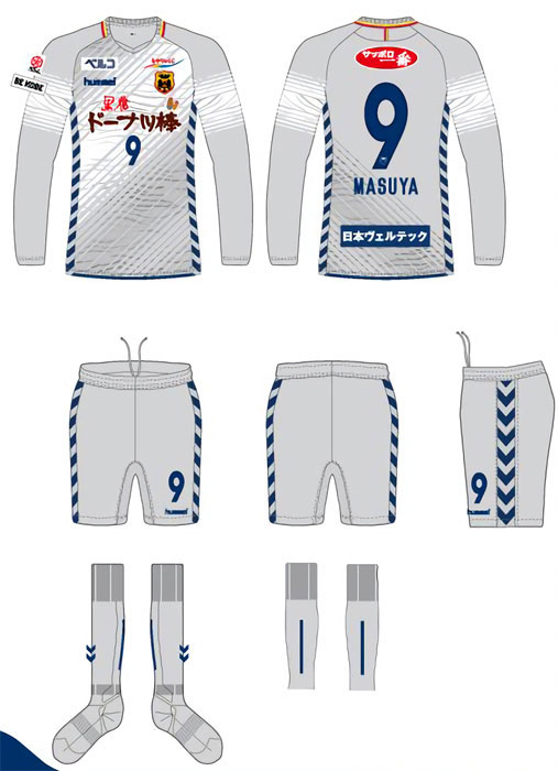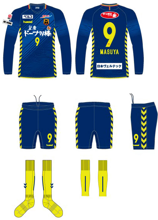 サードキットも昨季と同じネイビーを基調。今季から導入される鎖骨スポンサーは、これまで袖スポンサーだった「ベルコ」を右に、そしてこれまでアカデミースポンサーだった「ひかりのくに」を左にそれぞれプリント。