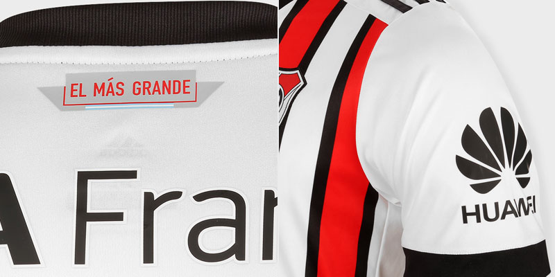 レッド、ホワイトのストライプを太めのブラックで縁取るスタイルや、中央のストライプにレッドを配した点は、90年代後半から2000年代初頭の黄金期に使われたアウェイキットに近い。胸スポンサーは“BBVA”(ビルバオ・ビスカヤ・アルヘンタリア銀行)で継続。