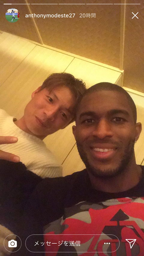 こちらは、モデストがInstagramのストーリーに投稿したムービーの一部。隣りにいたのはケルン時代の同僚で、現在は浦和レッズに在籍する長澤和輝!