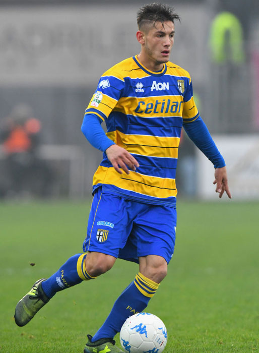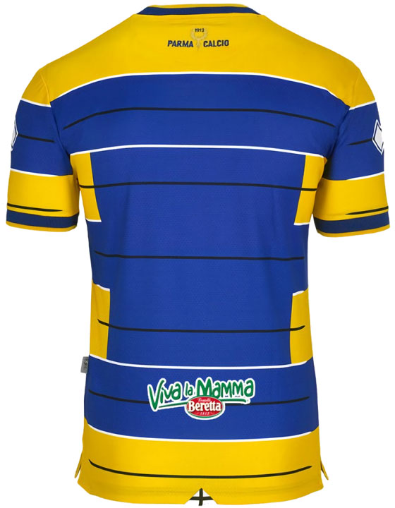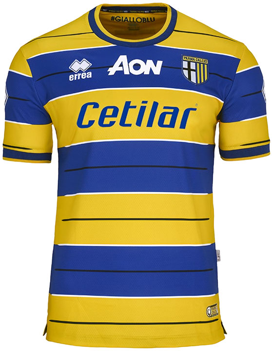 アウェイも伝統のジャッロブルー(黄と青)の水平ストライプ。中田英寿氏が在籍していた時代など、かつてはこの2色がホームキットに使われていた。