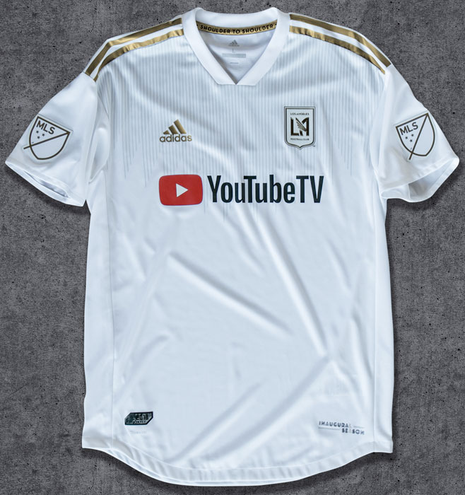 袖にはMLSバッジを装着。ホームキットはブラック/ゴールドだったが、アウェイはホワイトを基調としている。