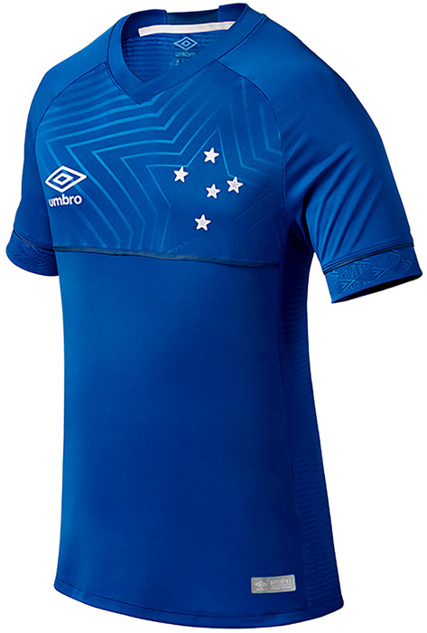 伝統のブルーを基調としたホームキット。クルゼイロと言えば南十字星のエンブレムが特徴だが、このユニフォームはその南十字星を、星の形のエンボスプリントで囲むようにデザイン。かなり“星づくし”のデザインとなっている。