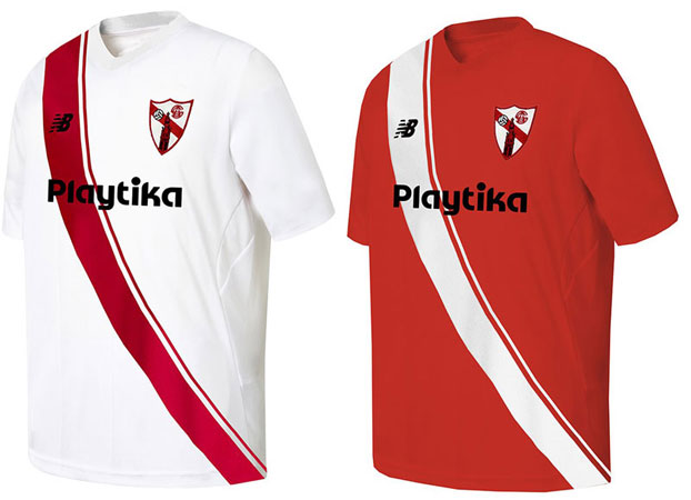 ホワイトがホーム、レッドがアウェイ。セビージャのリザーブチームだが、独自に“たすき掛け”デザインのユニフォームを用意している。エンブレムもオリジナルのデザインだ。胸スポンサー「Playtika」はオンラインゲーム。