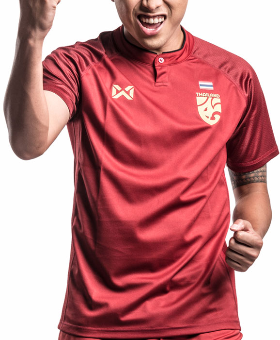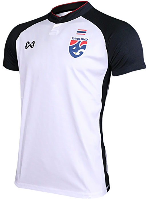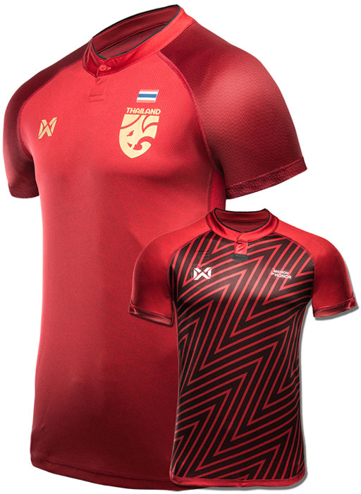 アウェイは定番のレッドを基調。首周りは立ち襟を採用し、胸元はシングルボタン。これは各キット共通の仕様となっている。