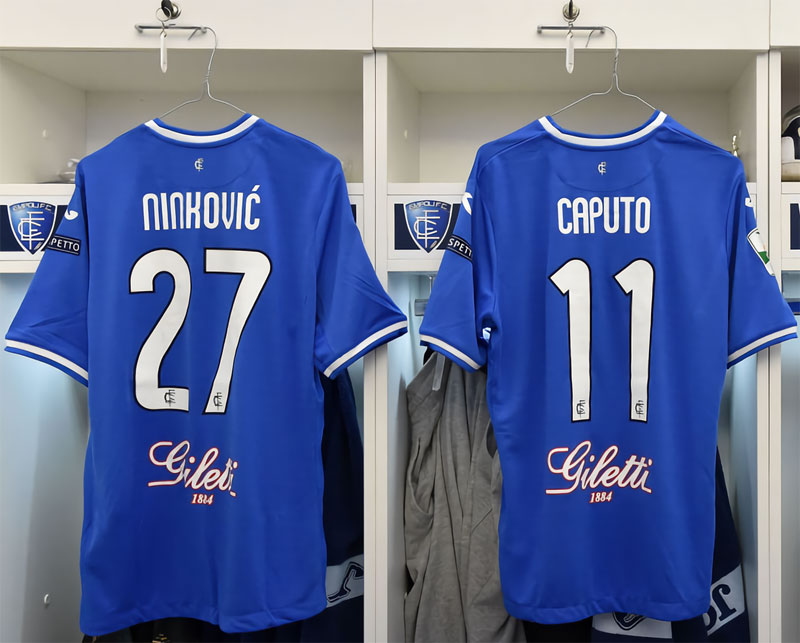 胸スポンサー「Computer Gross」はエンポリにあるPC販売企業。そして右鎖骨の可愛いスポンサーロゴ「SAMMONTANA」はイタリアのジェラート販売チェーン。どちらの企業も90年代からエンポリをサポートしている。