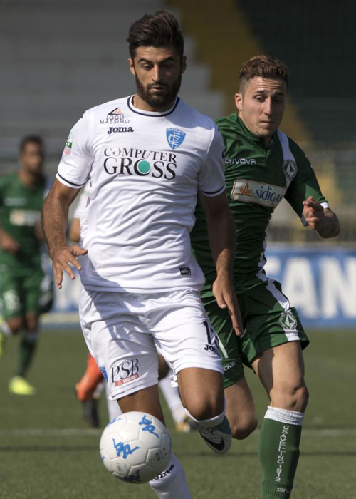 パンツ、ソックスともホワイトを基調。右の鎖骨スポンサーはホームキットと異なり、建築資材メーカーの「LOGLI MASSIMO」が付く。