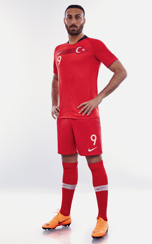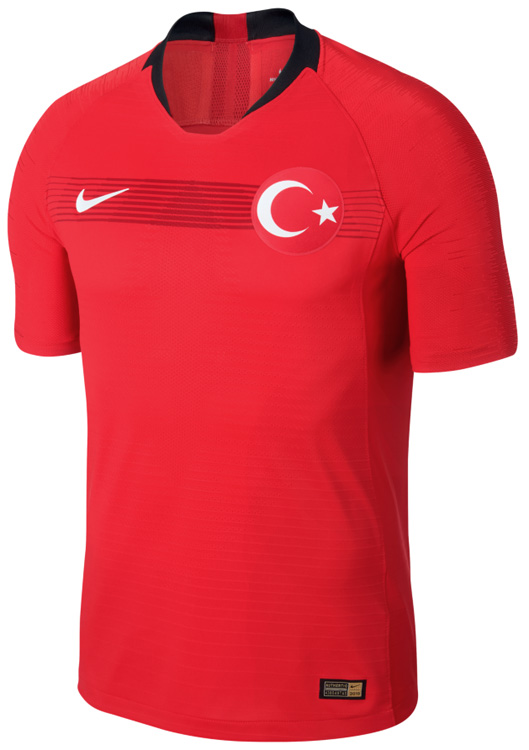 2016年モデルに比べるとやや明るめのレッドを基調に、胸に水平ストライプを取り入れたデザイン。エンブレムはTFF(トルコサッカー連盟)のものではなく、国旗の「三日月と五芒星」を配している。