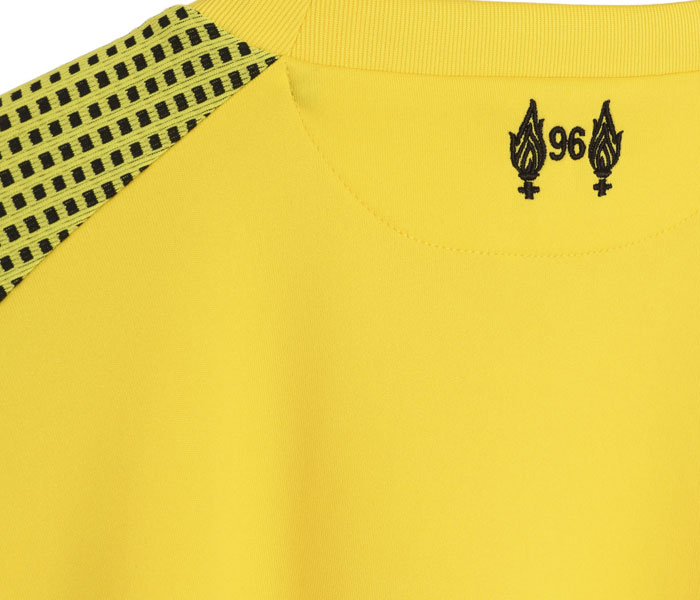 新しいGKユニフォームの1stはイエローが基調。エンブレム、メーカーロゴなどは全てブラックで彩っている。シャツの素材は通気性と吸収速乾性に優れたNBドライテクノロジーを使用。