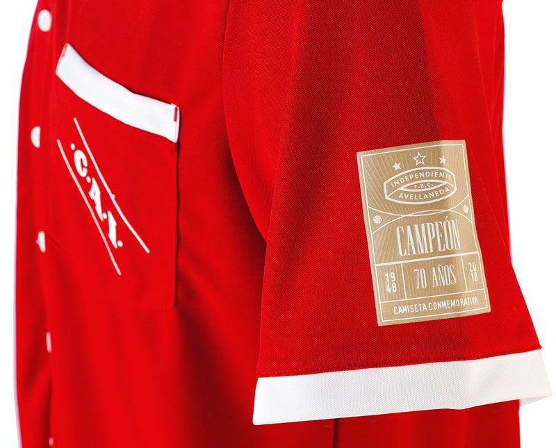 左袖には70周年記念のバッジ付き。「Independiente FBC Avellaneda」と書かれた楕円形のエンブレムは、1912年から14年にかけて使われていたもの。