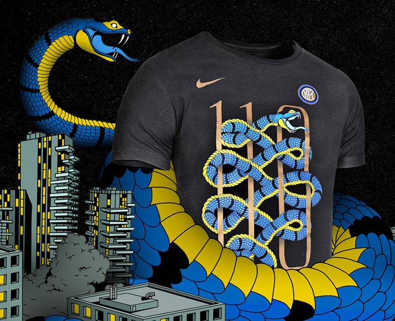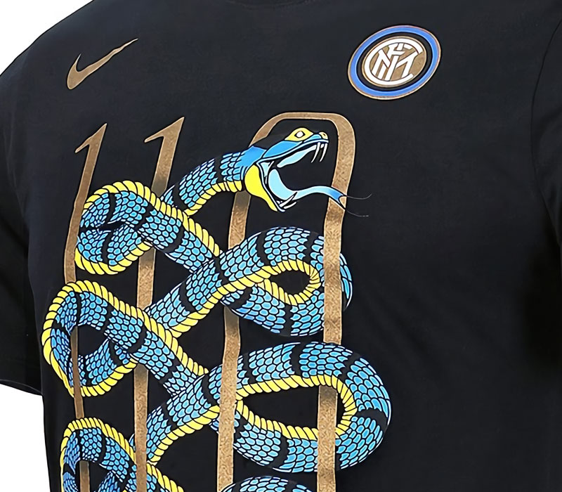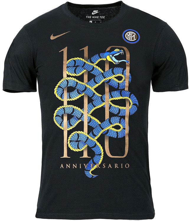 2018年でクラブ創設110周年を迎えたインテル。既に様々な110周年記念のグッズが発売されているが、新たに青い蛇を描いたTシャツが、キットサプライヤーのNikeからリリースされた。