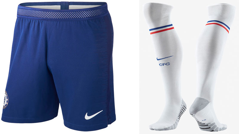 パンツはシンプルにブルーを基調。ソックスはホワイトを基調にブルーとレッドのストライプを配し、前面にはNikeロゴとチーム名の略称「CFC」のグラフィックが入る。
