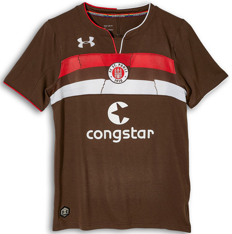 新しいホームキットは、ブラウンを基調にレッド/ホワイトの水平ストライプ。基本的に昨季のホームキットに近いカラーで、伝統を踏襲したデザインだ。胸スポンサーは通信会社の「Congstar」で継続。