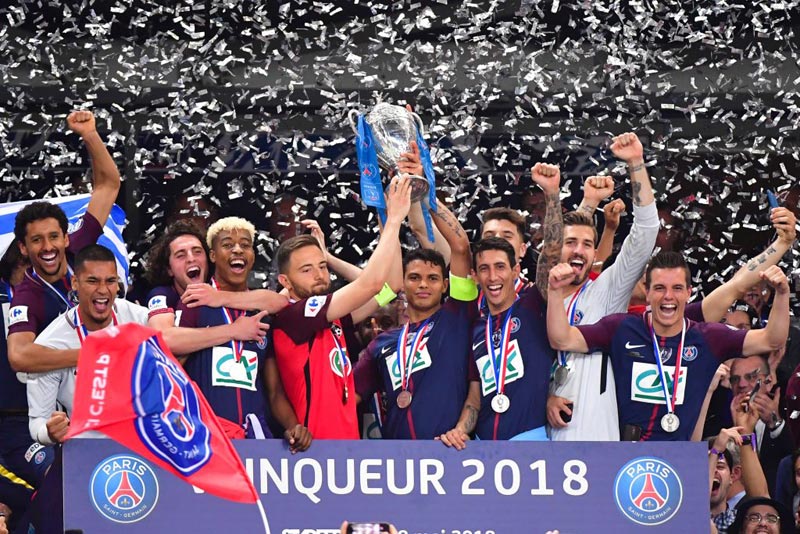 8日に行われたクプ・ドゥ・フランス(フランス杯)決勝戦で、3部のレ・エルビエを2-0で下して4連覇を達成したパリ・サンジェルマン。この優勝により今季は国内3冠を達成した。