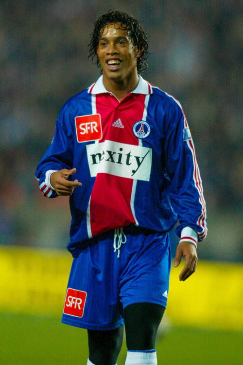 ご存知ロナウジーニョが着ているのはバルセロナ移籍前、2002-03シーズンのフランス杯モデル。もちろん当時のNike製ユニフォームとは、色もデザインも全く異なる。
