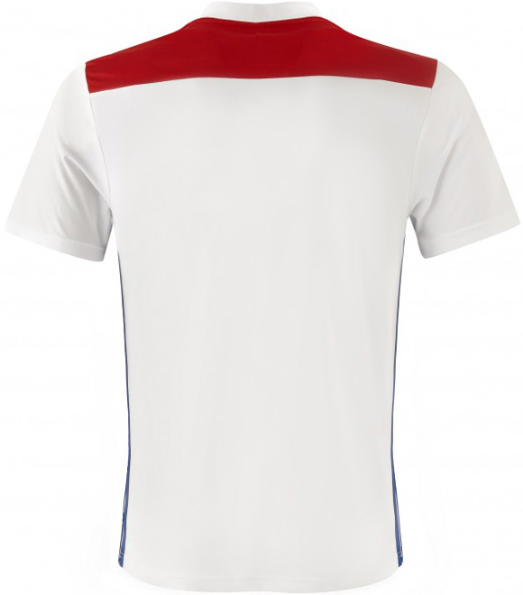 ホームキットはレッド/ブルーで従来通りのリヨンらしいカラーリング。この2色はリヨン市の旗や紋章に使われている。胸のボーダーはブルーのみで、肩部分を大胆にレッドで彩った。胸スポンサーは「HYUNDAI」で継続している。