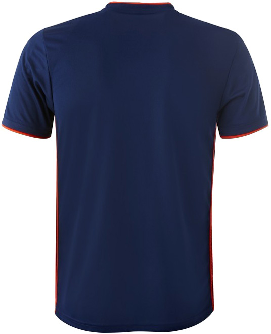 昨季と同じくネイビー(クラブの説明ではダークブルー)のアウェイキット。首周りは小さめの立ち襟で、胸元はシングルボタン止め。前面にプリントされたユニークなグラフィックは、ホームスタジアムのダイヤモンド状の屋根をデザインに落とし込んだ。