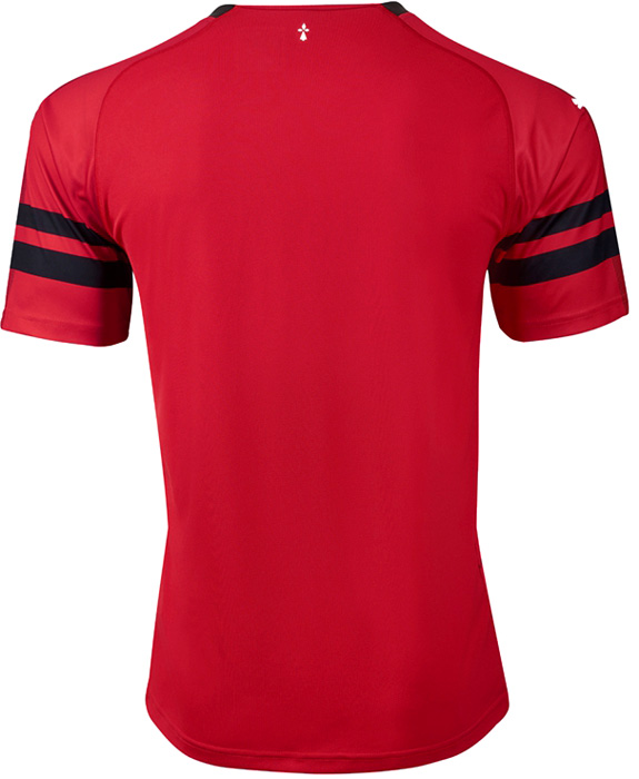 ホームタウンであるレンヌ市の旗や紋章に描かれているアーミンの紋様を、背面の首元に小さく配している。