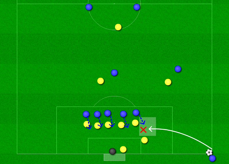 心理的には「ストーンの選手が跳ね返してくれるから大丈夫だろう」という感覚なのかもしれませんが、結果的にストーンの選手がボールに触れず、ニアに入った選手にボールをそらされる、そのままGKを触れずにファーサイドまでボールが流れてしまうというシーンが何度も見られました。