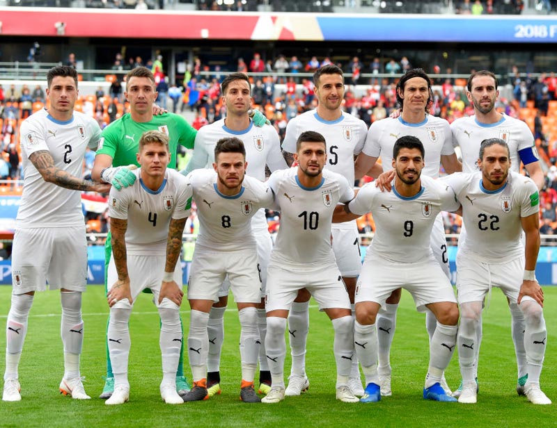 ウルグアイ代表はアウェイキット。上から「白-白-白」を着用。