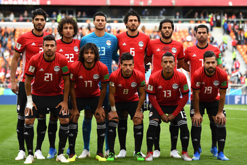 エジプト代表はホームキット。上から「赤-黒-黒」を着用。パンツは白ではなく黒だった。