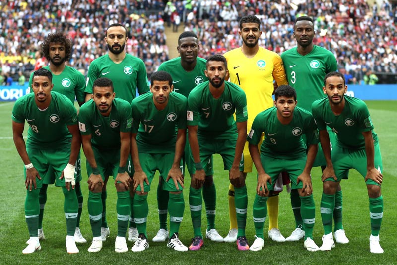 サウジアラビア代表はアウェイキット。上から「緑-緑-緑」を着用。