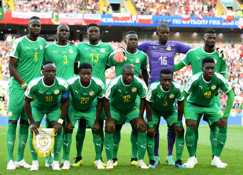 セネガル代表はアウェイキット。上から「緑-緑-緑」を着用。