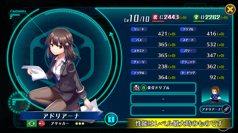 前述したアドリアーナのステータス画面にはブラジル国旗が表示されるが、加賀慎一郎には日の丸でなくドイツ国旗が表示されたり、あの選手を思わせるエザールはイングランド国旗になっていたり。このあたりの「国旗が出身国を表すのか所属リーグを表すのか」というルールの統一感のなさは、サッカーファンからしたら、いちいち気になるノイズになる。