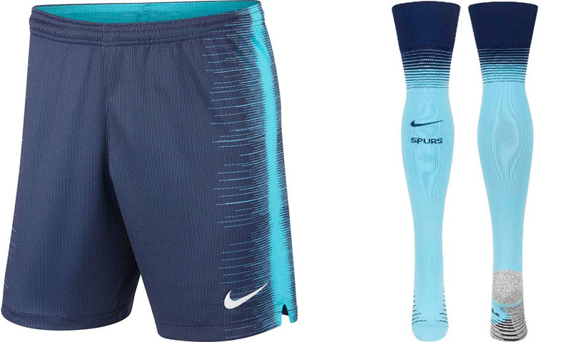 新しいアウェイは定番のネイビーを基調に明るめブルーという組み合せ。今までのトッテナムのキットには見られなかったカラーコンビネーションが完成した。