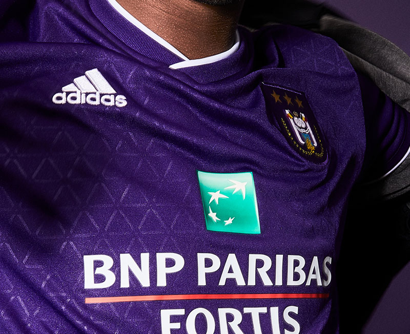ホームキットは伝統のパープルを基調に、三角形のグラフィックが全体に散りばめられた独特なデザイン。胸のスポンサーは「BNP Paribas Fortis(ベルギーの銀行)」で継続。