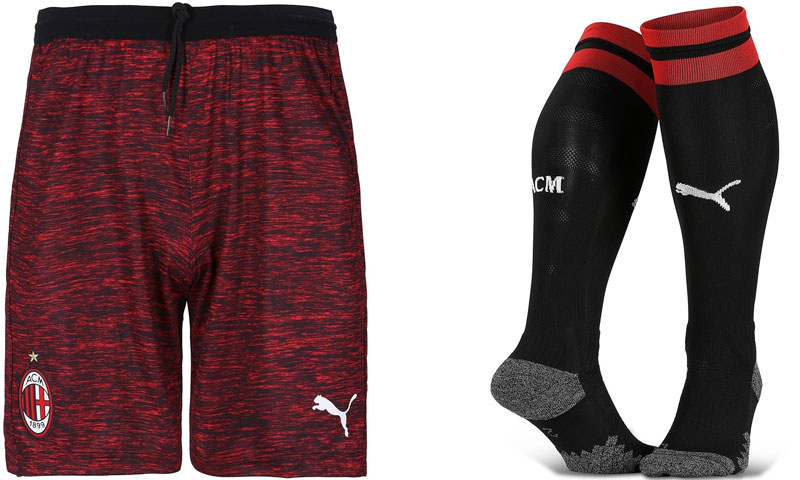 パンツはレッド/ブラックのメランジ柄。ソックスはブラックを基調に、前面にPumaのキャットロゴ、背面にチーム名の略称“ACM”が入る。