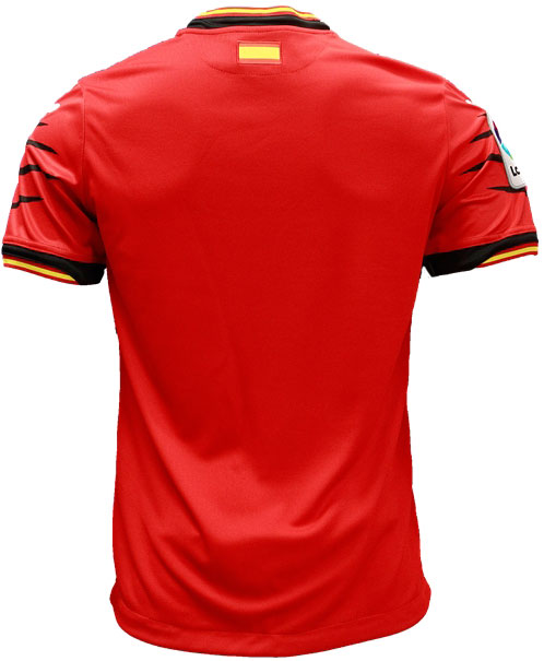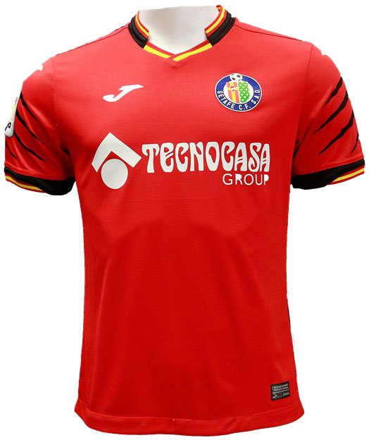 アウェイキットは昨季と同じくレッドを基調。ヘタフェの街が属するマドリード州の旗色と同じだ。胸スポンサーは「TECNOCASA GROUP」で継続している。