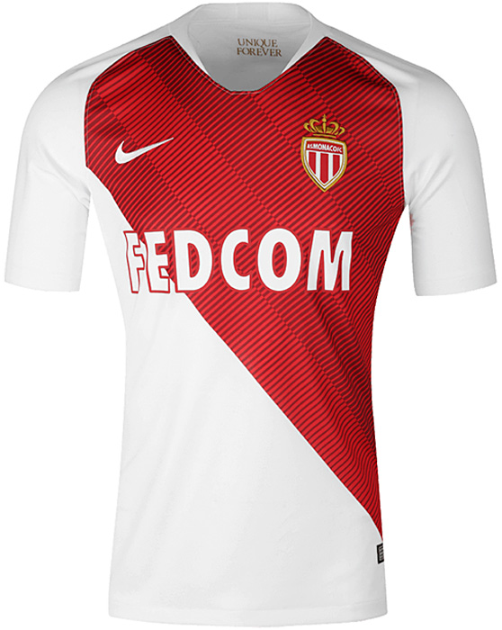 ホームキットは1960年以来変わることのない、モナコ公国旗カラーの斜め2分割。元ハリウッド女優の故グレース公妃によるデザインなのは有名なエピソードだ。この2分割柄を使い続けて今季で58年目となるが、その間に8度のリーグ優勝を経験している。
