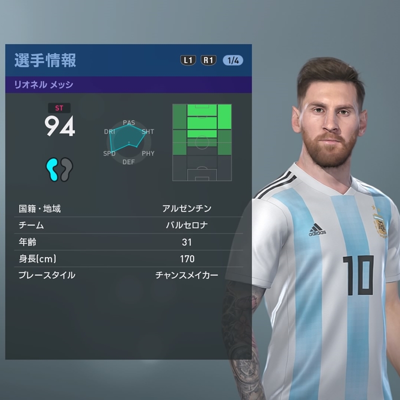 まずはメッシ。個人での打開、驚異の決定力に加え、味方を使う能力も超一流。スキルも得点に繋がる効果的なものが多そうだ。
