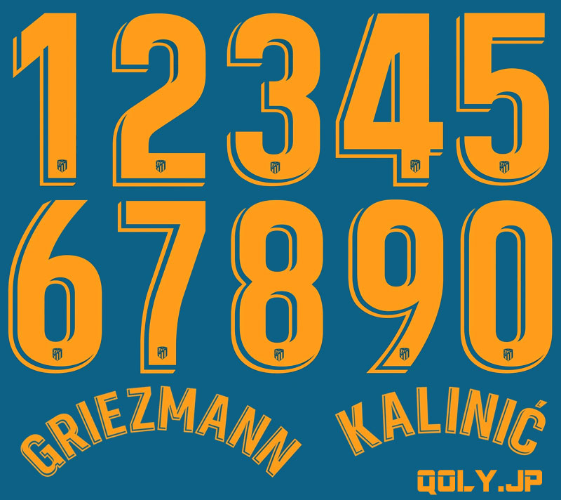 サードキットのラ・リーガ用ネームナンバーはオレンジで、番号下部にはチームロゴをプリントする。