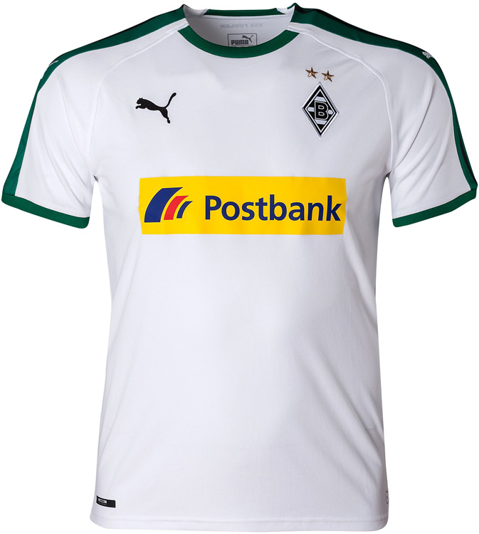 新しいホームキットはボルシアMGの王道を行くクラシックなデザイン。色はホワイトを基調とし、首周りと袖を濃いグリーンで彩っている。胸スポンサー「Postbank」は今季で10シーズン目となる。
