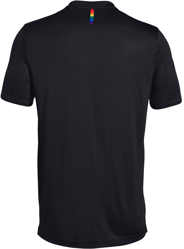 この6色のレインボーカラーはLGBTの象徴。ザンクトパウリはLGBTの尊厳を尊重し、性的マイノリティへの差別に反対の立場を表明。その意思表示として各キットにレインボーカラーのテープを付けている。