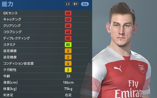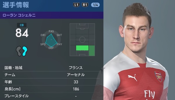 アーセナルの主軸選手、『ウイイレ2019』での能力と顔はこんな感じ