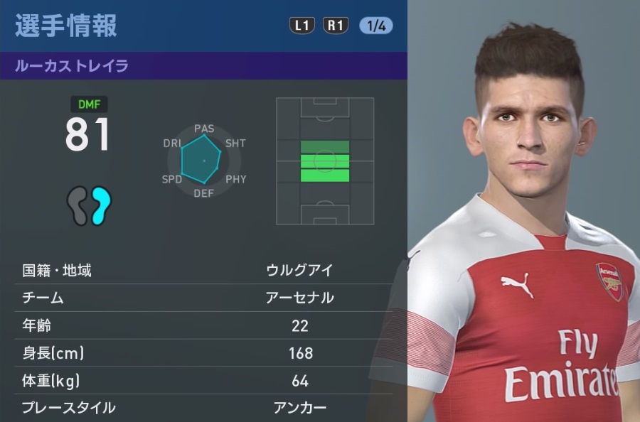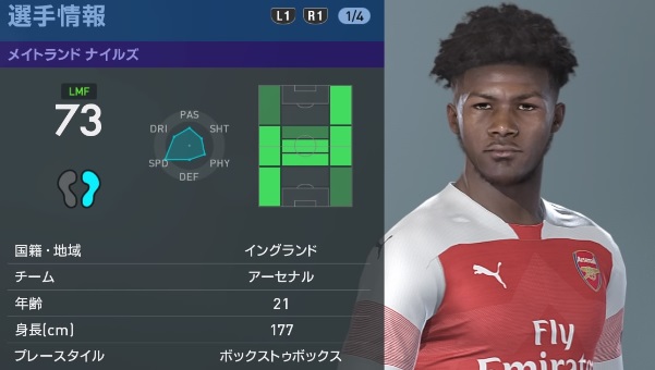 アーセナルの主軸選手、『ウイイレ2019』での能力と顔はこんな感じ